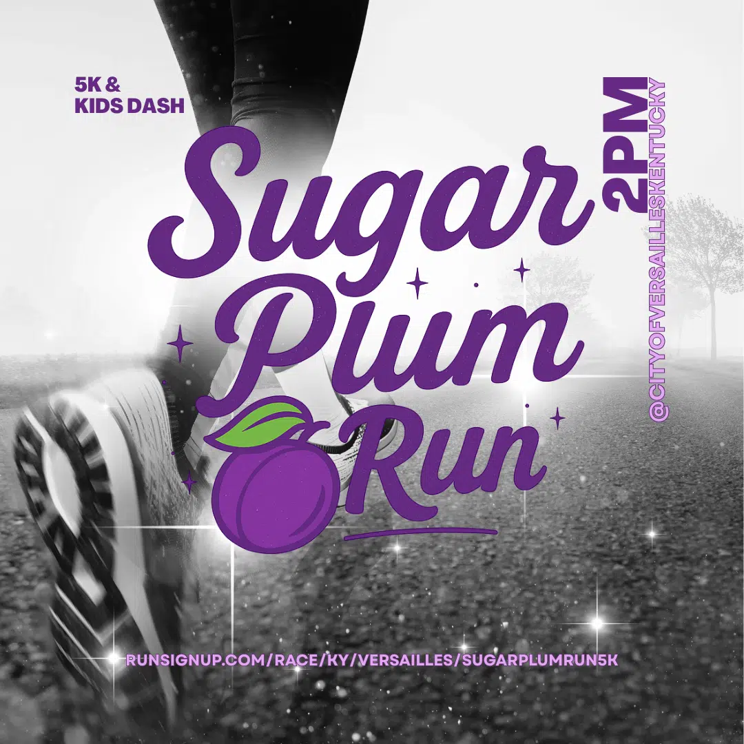 Sugar Plum Run – 5K & Kids Dash 💜🍬 📅 Saturday, December 6th 🏃♀️ Kids Dash – 1:45PM 🏃 5K – 2PM 📍 Downtown Versailles, The District, 105 Rose Hill…