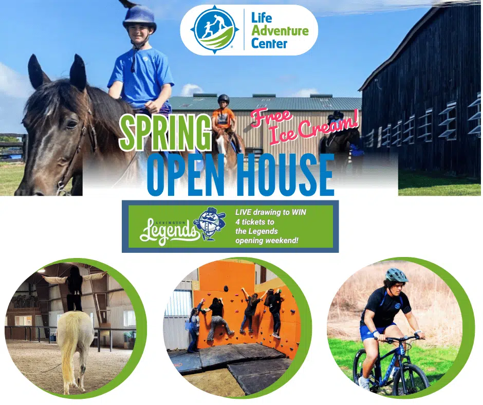 Free Spring Open House highlighting our Bouldering Wall, Mountain Bikes, and Vaulting Showcase for families! Come out and learn about the Life Adventure Center, have some ice cream and enter our raffle for free opening night Legends tickets.